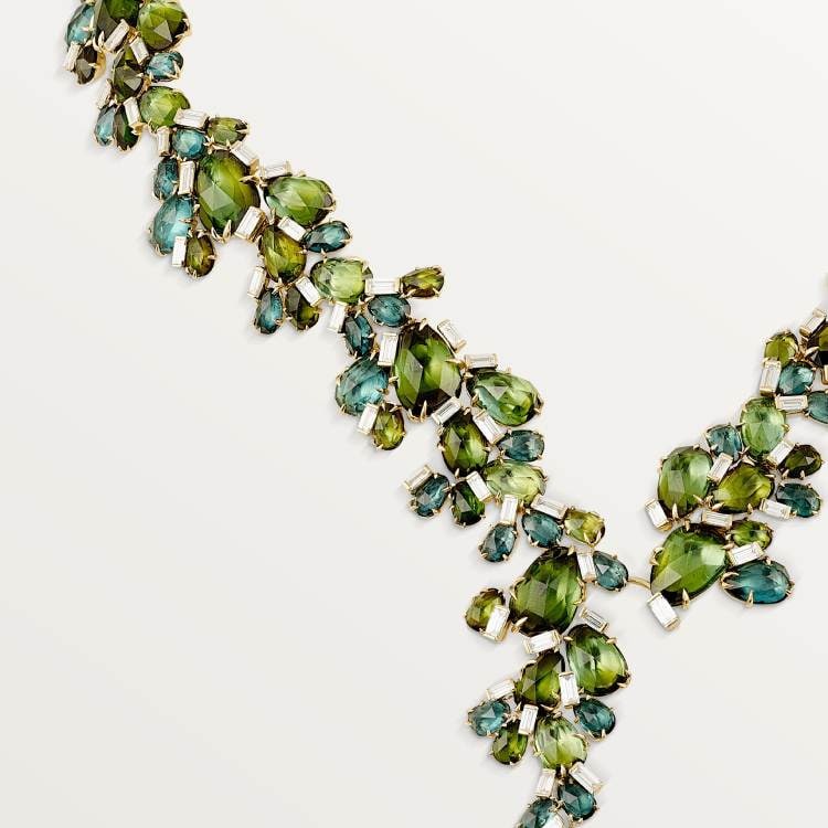 CACTUS DE CARTIER necklace, 750‰ yellow gold, set with 114 baguette-cut diamonds, total weight 9.20 carats, tourmaline.